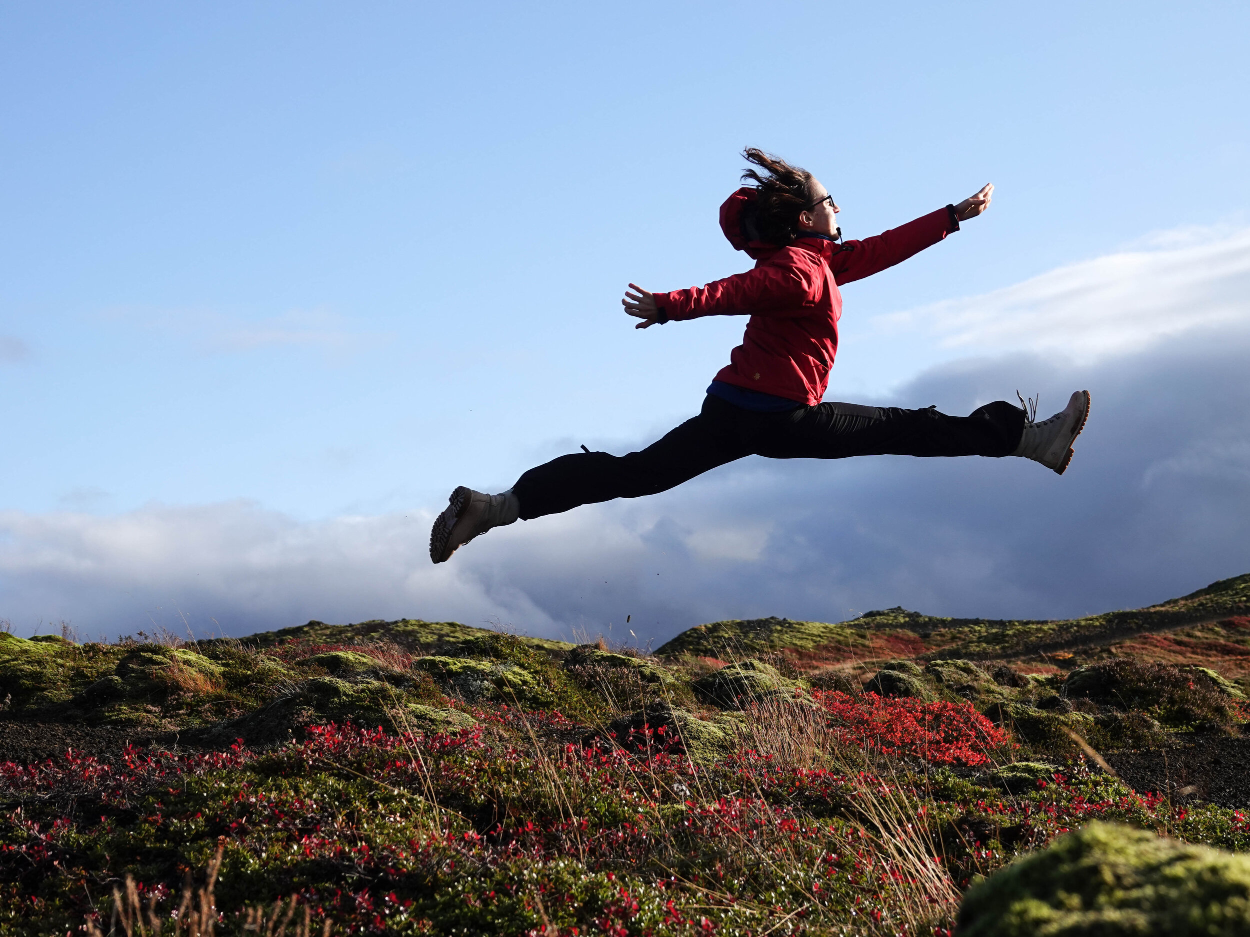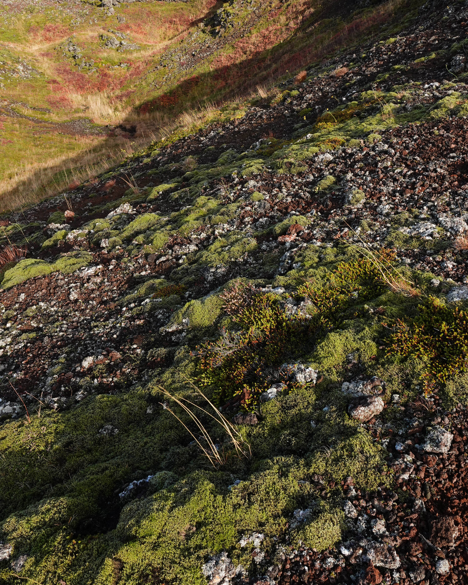 And it wasn’t just green vegetation—there were vibrant orange and red autumn colours from low shrubs, blending with the rare Icelandic sunshine to create an unbelievably stunning colour palette.